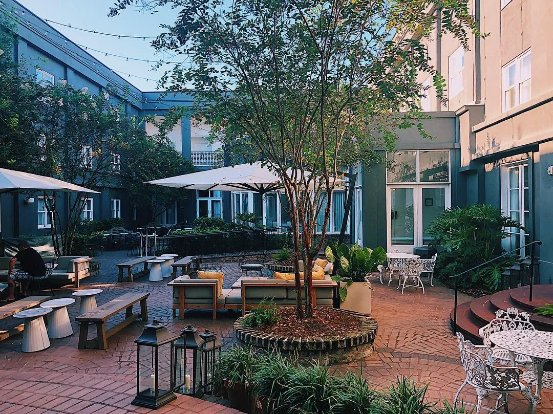Located on the east side of Bay Street, the Kimpton Brice Hotel is a short walk from everything you want to explore in the Savannah Historic District, and just a block away from the River Street Waterfront. The hotel has a ton of amenities including an outdoor pool, a small fitness center, coffee and tea in the lobby, a full restaurant and bar, Pacci (see Eat & Drink), a garden, and valet service.