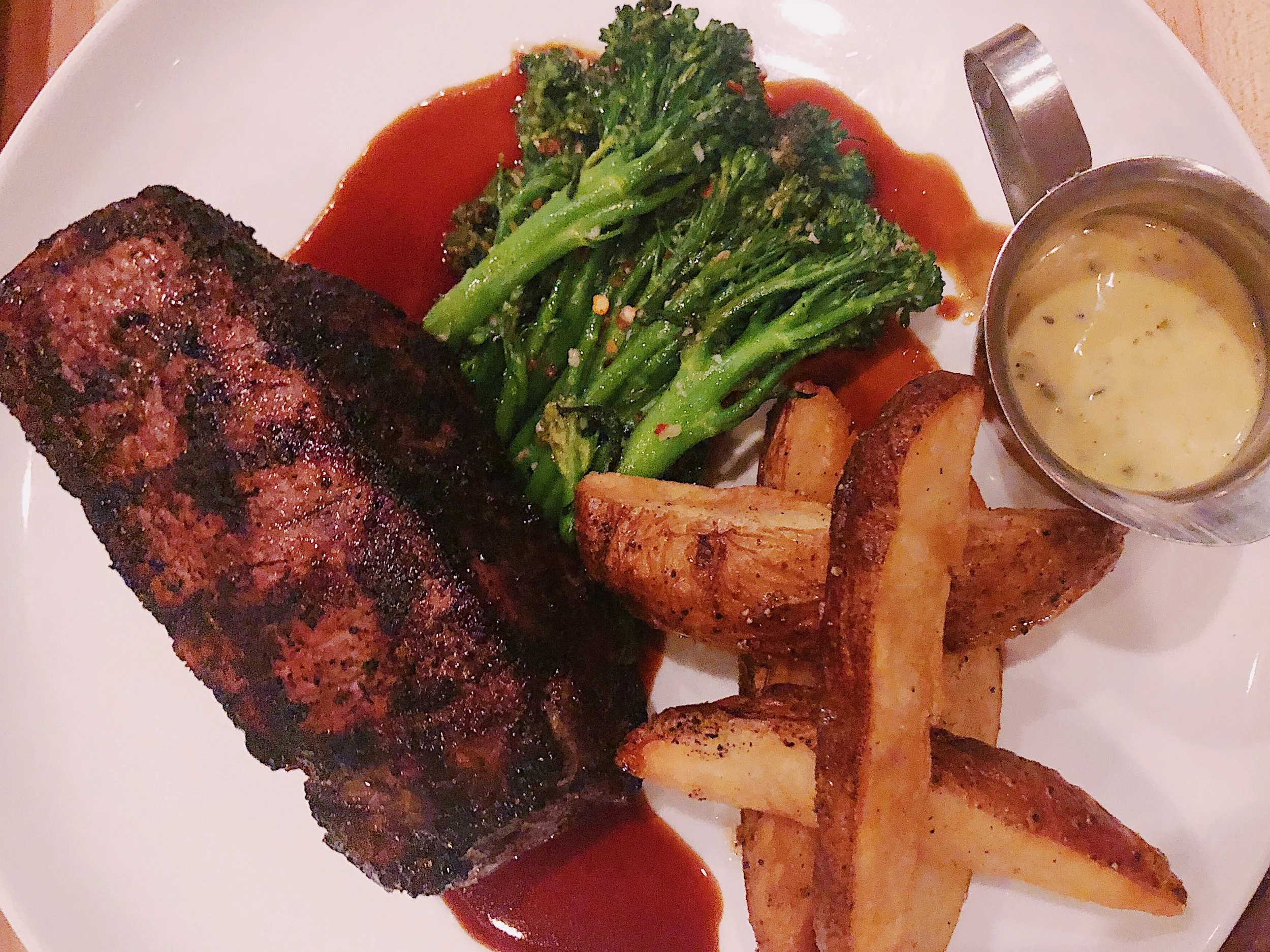 A former bank-turned-gastropub, Cotton & Rye is serving up American classics with a southern twist. Owned by one of the area’s most renowned chefs, Zach Shultz, the chic restaurant boasts a beautiful bar with an extensive cocktail, beer and wine list. I highly recommend ordering the cheese and sausage board to start, and the fried chicken thighs with spicy maple syrup, the sweet potato casserole, and the steak to share. We had the NY Strip steak with brown garlic broccolini, a special for the night, but the hanger steak on the menu sounded pretty amazing, as well.