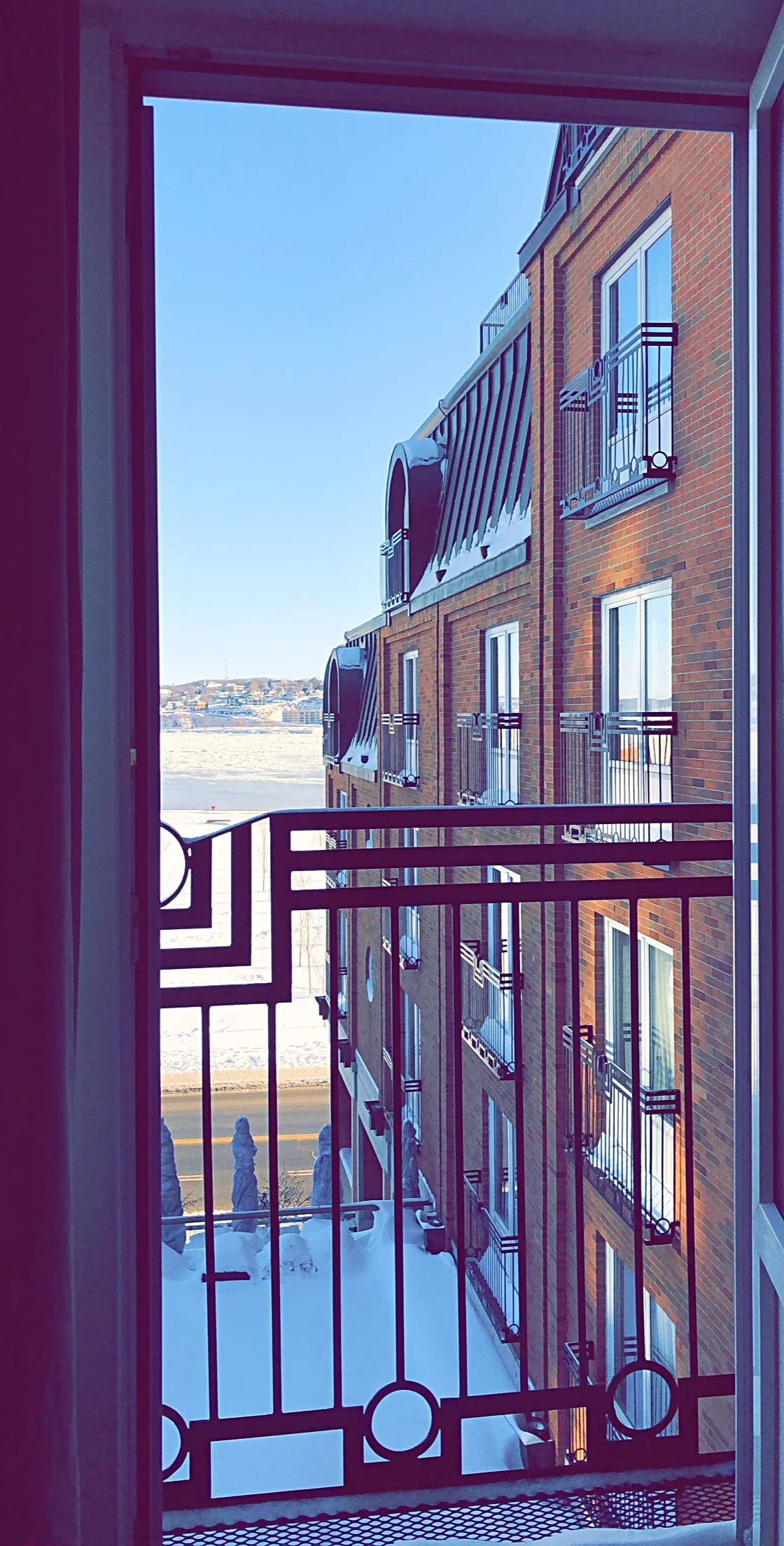 Auberge Saint Antoine is a luxury, boutique hotel located in Old Quebec City on a quiet street off of Le Champlain, the main retail and dining strip. The hotel and its immediate surroundings are quaint and historic, and the hotel is even set up like a small museum with local artifacts and information. We had such a lovely stay here with many thanks to the staff and amenities. Our room was very spacious; there was a hallway with closet space and a fully stocked mini-bar, a master bathroom with two sinks, a large tub, a huge walk-in shower, and a king size bedroom. Two french doors opened to views of the Saint Lawrence River which was frozen but incredible to see. Whenever we’d return back to our room, there had been turn-down service, jazz music playing on the stereo, and a sweet of some sort. The hotel bar and lounge were also cozy and welcoming.